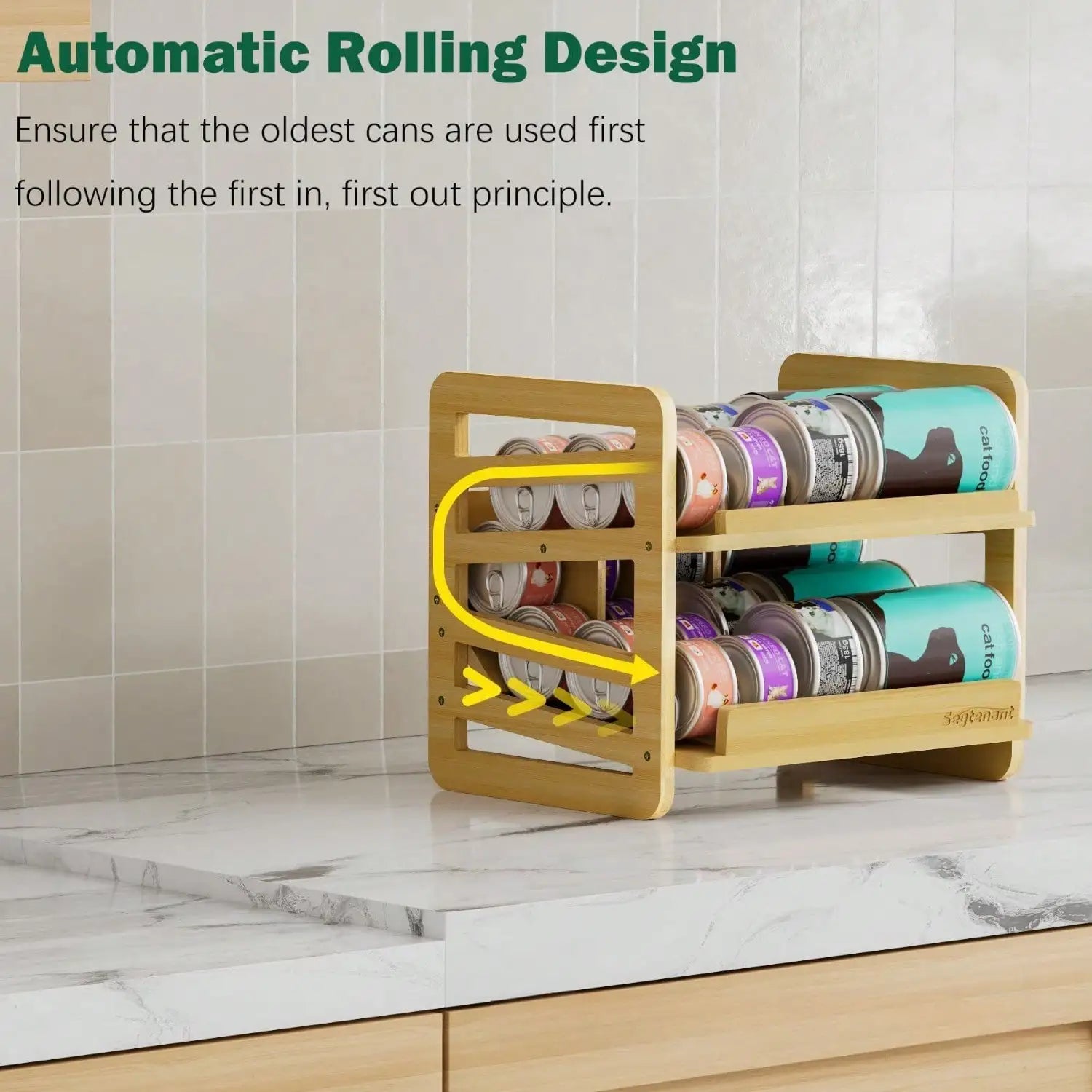 Cat Food Cans Storage Organizer 2 Tier Stackable Bamboo