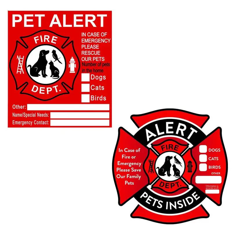 Simply write the number and type of pets you have, then stick it to a window, door, or entryway for instant peace of mind.